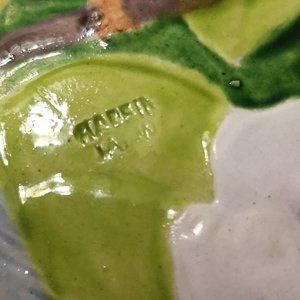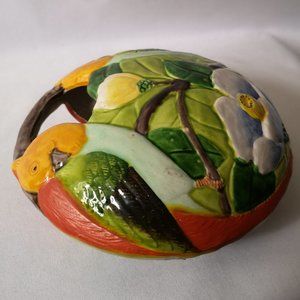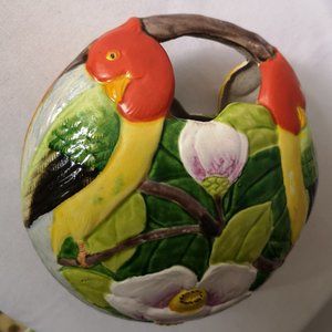 Vintage Ceramic Hanging Pocket with Colourful Parrots and Flowers Made in Japan
