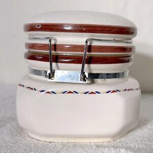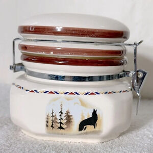 Vintage Ceramic Mountain Forest Wolf Canister With Lid Small