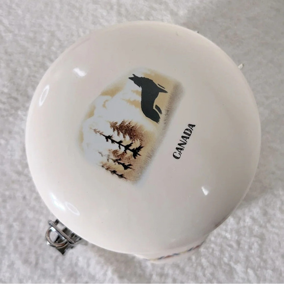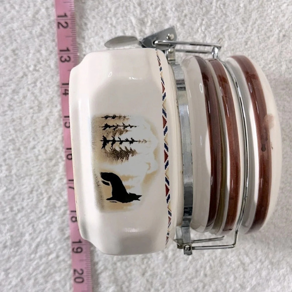 Vintage Ceramic Mountain Forest Wolf Canister With Lid Small