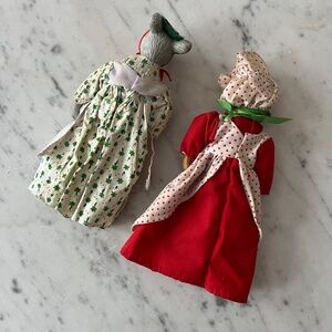 Vintage ceramic mouse and bear soft body figurine pair. Each has ceramic hands and feet, and are in very good condition. Each measures approx. 6.5" x 3" x 2".