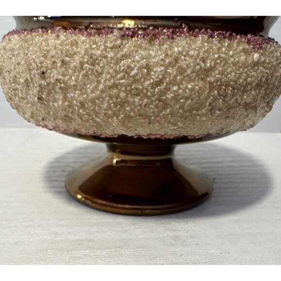 Vintage Ceramic Pedestal Bowl With Textured Ivory & Brown Glaze Finish