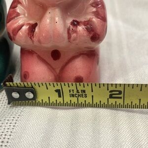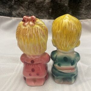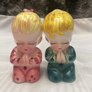 Vintage Ceramic Praying salt and pepper shakers in Pink and Green