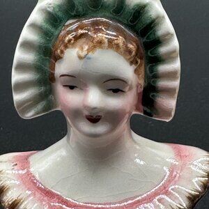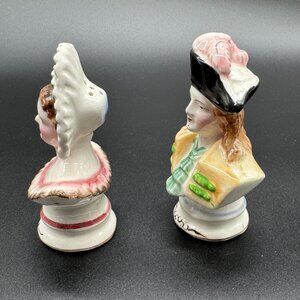 Vintage Ceramic Salt Pepper Shaker Set Colonial Woman And Man Bust Japan Shakers