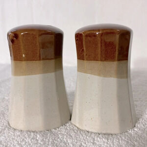 Vintage Ceramic Stoneware Tan Brown Salt & Pepper Shakers