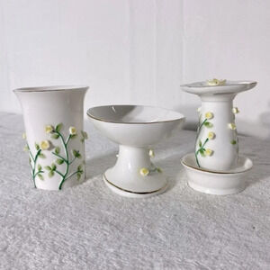 Vintage Ceramic Yellow Flower Bathroom Set Toothbrush Holder Cup Soap Dish