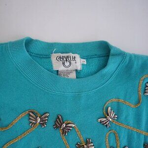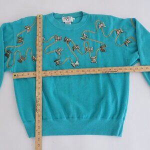 Vintage Cervelle Embellished Turquoise Knit Sweater Bead Butterfly L Whimsygoth