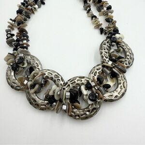 Vintage Cg Signed Gemstone Silver Tone Chain Chunky Statement Necklace