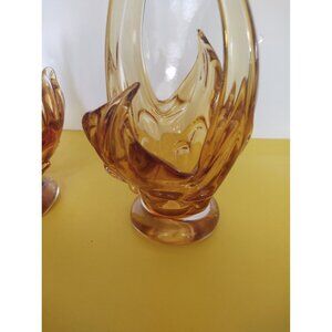 Vintage Chalet Canada Art Glass Vases Amber/Orange set of 2 1960's 11"
