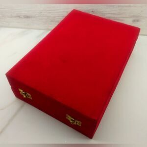 Comes in a red velvet box, with the name of the store in Calcutta, box does have damage.
