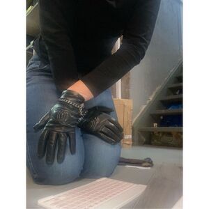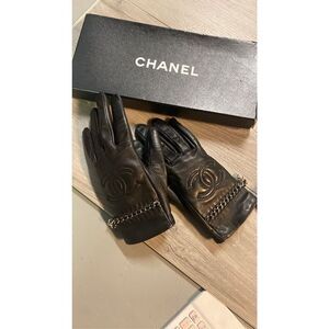Vintage Chanel Women’s Authentic Leather Chain Gloves Black Size 7