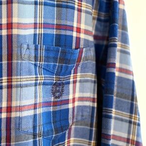 Vintage Chaps blue and red plaid flannel button-down—lightweight, soft, and perfect for laid-back vibes. Easy to wear and even easier to love.