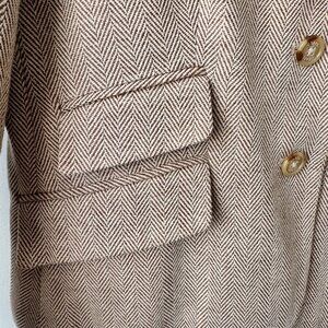 Vintage Chaps Ralph Lauren Petite Linen/Cotton Blend Houndstooth Blazer Brown