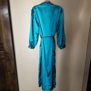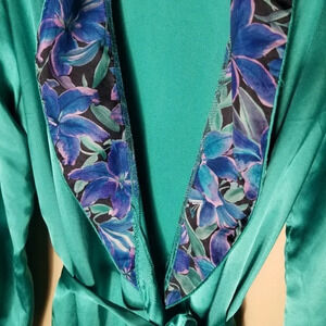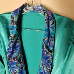 Vintage Chardin Satin Teal Blue Floral Kimono Robe S