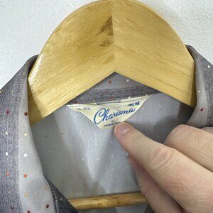Vintage Charisma Townline 70s Disco Men M 15.5 Gray Groovy Button Shirt