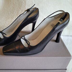 Vintage Charles Jourdan black leather heeled shoes, size 6B