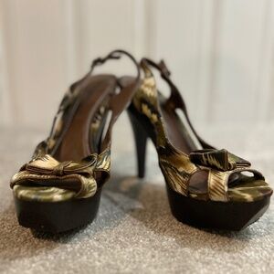 Never been worn. Vintage Charlotte Russe. Bottom of shoes are wooden. Brown and patterned. Size 7