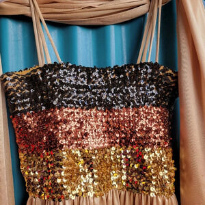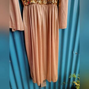 Vintage Charm Fashions 70s Tan tube top Sequin Dress Spaghetti Straps size 8