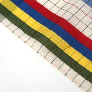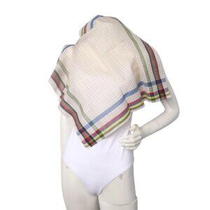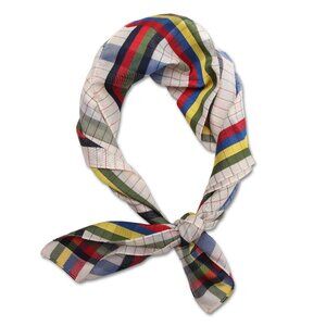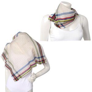 Vintage Checkered Rainbow Square Poly Scarf Retro Festival Check White Blue Red
