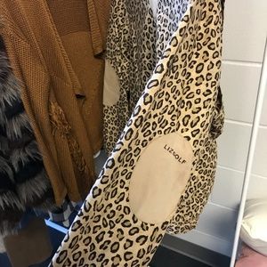 Super cute layering piece or lightweight jacket option. Though this piece is vintage, the cheetah print and elbow patches make the look seem relevant and on trend. Size M.