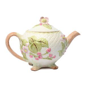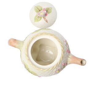 Transport yourself back to 1988 with the Vintage Chelsea Morning Teapot, a delightful creation by Hallie Greer for the Franklin Mint. Crafted in ceramic, this teapot showcases a stunning floral design in white, pink, green, and tan, complemented by a quilted pattern. With four feet adding a touch of elegance and stability, it's not just a teapot but a work of art. Enjoy a nostalgic teatime experience with this charming piece that captures the essence of vintage beauty.