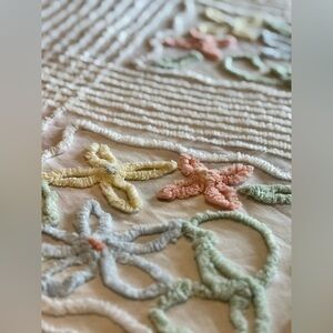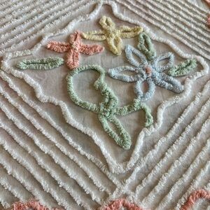 Vintage Chenille Bedspread, Queen/Full Size White Off White Pastel Floral Design