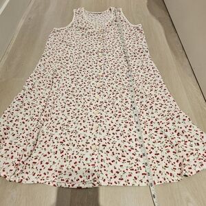Super cute cherry print, very summery and sweet - can be worn with a belt for a more fitted look or as is for a more casual look.