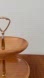 Elegant Mid-Century Modern two-tier serving tray crafted in cherry wood, featuring a sleek gold-tone handle.