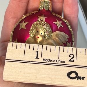 Vintage Cherub Glass Christmas Ornaments Set of 6 Blue And Red 2”