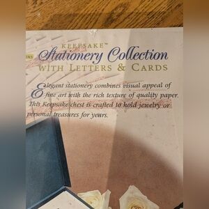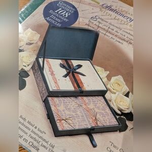Beautiful stationery box with decorative ribbon. Perfect for gifting or personal use.
