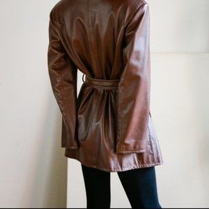 Vintage Chestnut Brown 70s Leather Belted Coat (RELISTED)