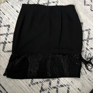 Sophisticated black skirt with stylish fringe detail. Ideal for versatile wear.