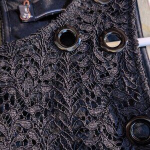 Perfect condition lace overlay cocktail dress, fully lined, size 6. Large grommets along neckline.