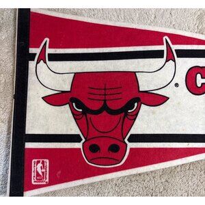 A classic Chicago Bulls felt pennant, officially licensed by the NBA. Features iconic team logo and colors, perfect for collectors or sports enthusiasts.
