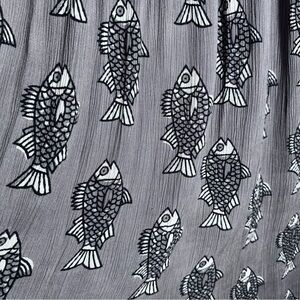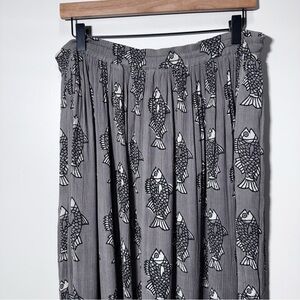 Vintage Chico's Broomstick Maxi Long Skirt Grey Black Fish One Size 90s Y2K