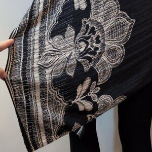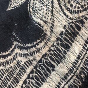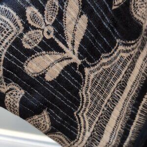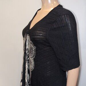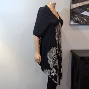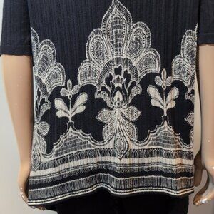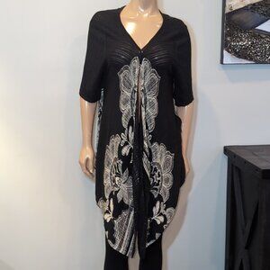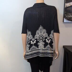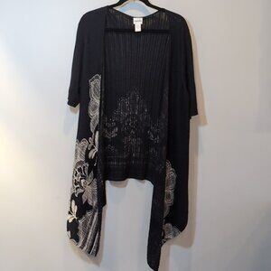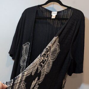 Vintage Chicos Damask Modal Cardigan Open Flyaway Front Short Sleeve Ribbed Knit