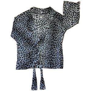 Vintage Chico's Women's Tie-Front Top Leopard-Print Black & White Size XS (EUC)