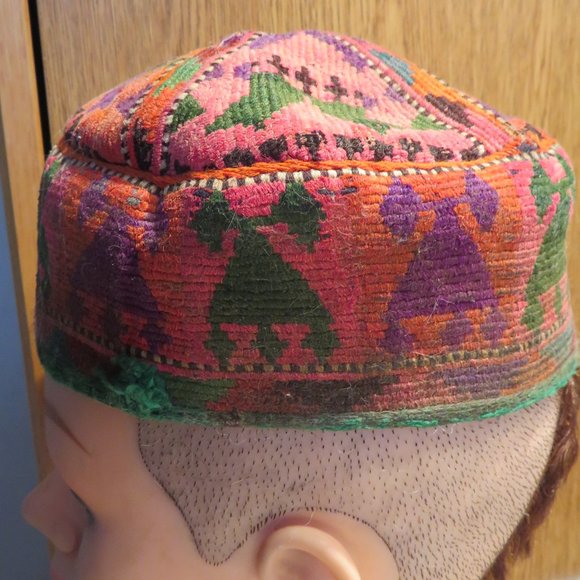Vintage Child's Traditional Kufi Hat Small 7" Diameter (10J)
