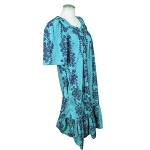 Vintage Chin Lan Hawaiian Dress Womens Size Med Green Floral Made In Hawaii