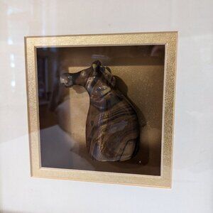 Vintage Chinese Horoscope Shadow Art Box w. Ceramic Horse - Zodiac Astrology