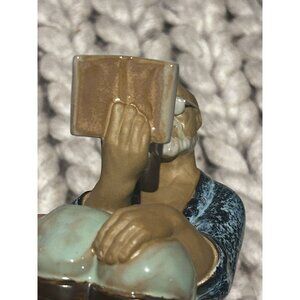 Vintage Chinese Shiwan Mudman Figurines Reading a Book 1900's Décor