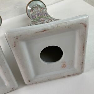 Vintage Chinoiserie Candle Holders Pastel Textured Boho Decor - One Pair (2)