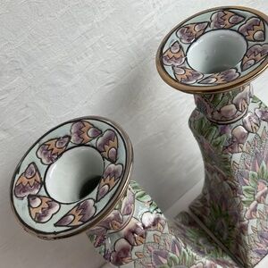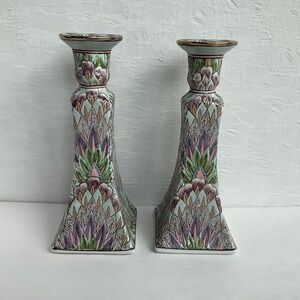 Vintage Chinoiserie Candle Holders Pastel Textured Boho Decor - One Pair…