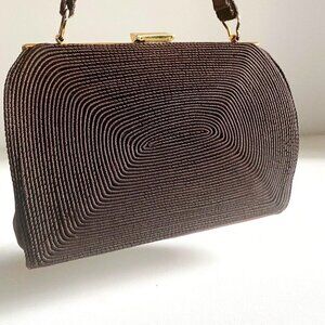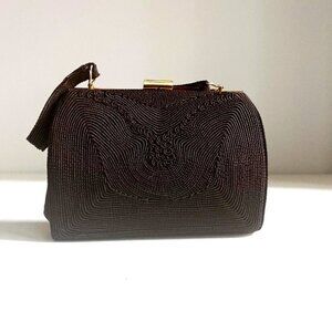 Vintage Chocolate Brown Cordé Textured Fabric Detail Small Evening Handbag.