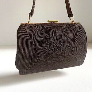 Vintage Chocolate Brown Cordé Textured Fabric Detail Small Evening Handbag \
