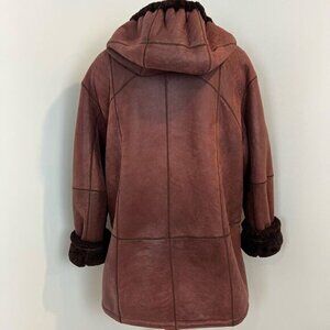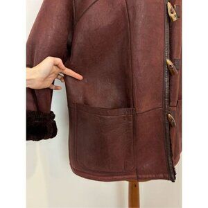 Vintage Christ Germany Women’s 38 Red Brown Sheepskin Leather Bone Clasps Jacket