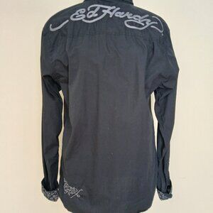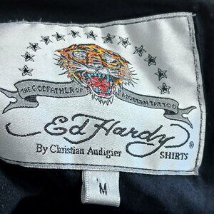 Vintage Christian Audigier Ed Hardy Love Kills Slowly Button Down Shirt Black M