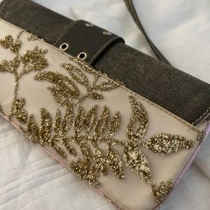 Vintage Christian Dior 2003 Collection Limited Edition Brocade Gold Clutch Handbag Bag Silk overlay with gold embroidered designs. Gold signature hardware.
