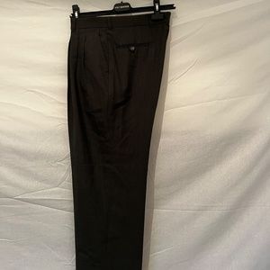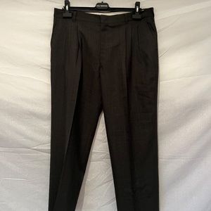 Elevate your wardrobe with these vintage Christian Dior cropped pleated trousers. These gray husky wool pants feature a striped pattern, slide closure, and woven fabric type that make them perfect for both casual and workwear occasions. With a pant size of 35 inches and inseam of around 26 inches (which can be let out 3.5 inches), these pants are a size M and have a regular fit. The Dior brandname and subtle fashionable details add a touch of designer flair, while the straight leg style and cropped length give them a classic yet trendy look. These pants also come with convenient pockets, making them both stylish and functional. Don't miss out on the chance to add these timeless pants to your collection. These were made in Canada in 65% polyester and 35% wool. Please PM for exact measurements.