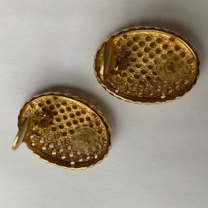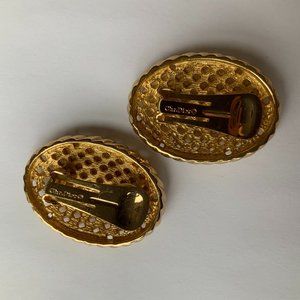 This listing is for beautiful vintage Christian Dior gold-tone clip-on earrings. They are oval shaped and signed Chr. Dior © on the clasp of each earing.