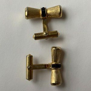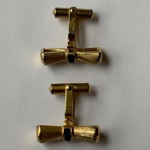 Vintage Christian Dior Signed Gold-Tone Black Cuff Links